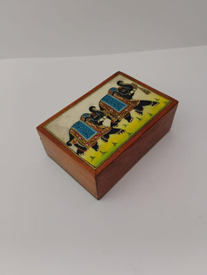 2.5X8X2-inch Hand Painted Teak wood & Marble Stone Box