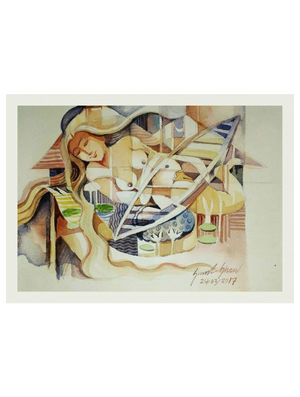 2.5X4-inch Hand painted Teak wood & Marble stone Pen Stand