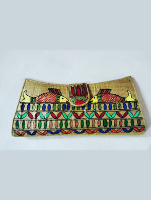 Hand-Painted Golden Colour Madhubani Flap Clutch bag