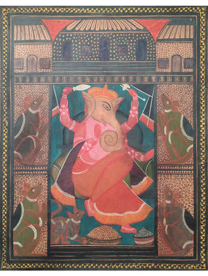 28x22" Lord Ganesha with mushikas (86 years old painting)