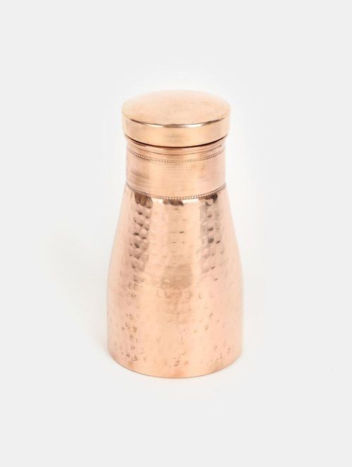 For millennia, Ayurveda has recommended storing water in copper vessels to harmonize the three doshas vata, pitta, and kapha. The global recognition of the antibacterial properties of copper-stored water attests to its efficacy. Opt for this exquisite hammered copper bottle with glass to embrace the health advantages of drinking water infused with copper, promoting overall well-being.