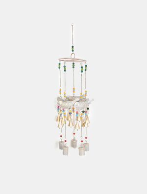 This charming miniature wind chime features delicate multicoloured glass beads and three petite brass bells. Crafted by hand, this wind chime is fashioned from recycled brass. Bell chimes serve various purposes, whether as a modest home adornment or as a conduit to our spiritual inclinations. Enhance your garden or adorn any space within your home with this delightful piece.