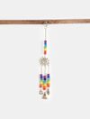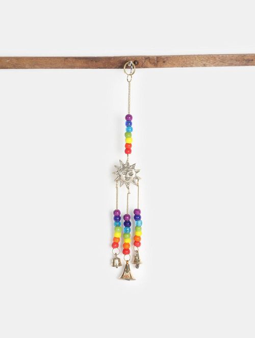 This exquisite wind chime features meticulously handcrafted brass bells adorned with vibrant rainbow chakra beads, all created through fair trade practices. Crafted with care from recycled brass using traditional techniques, these bells exude a charming rustic elegance. Each bead represents a chakra, promoting the ancient practice of chakra balancing, which is thought to enhance both physical and emotional health. The intricate charm, combined with the colorful beads and bells, makes this piece perfect for hanging in windows or doorways, providing a gentle, soothing chime indoors or out on a balcony.