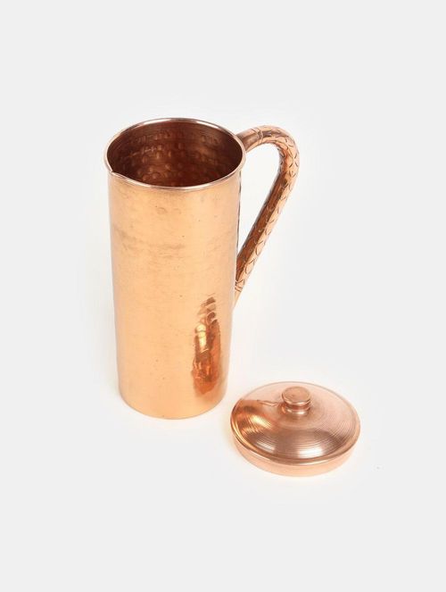 For millennia, Ayurveda has recommended storing water in copper vessels to harmonize the three doshas vata, pitta, and kapha. The global recognition of the antibacterial properties of copper-stored water attests to its efficacy. Opt for this exquisite hammered copper jug with lid to embrace the health advantages of storing and drinking water infused with copper, promoting overall well-being.