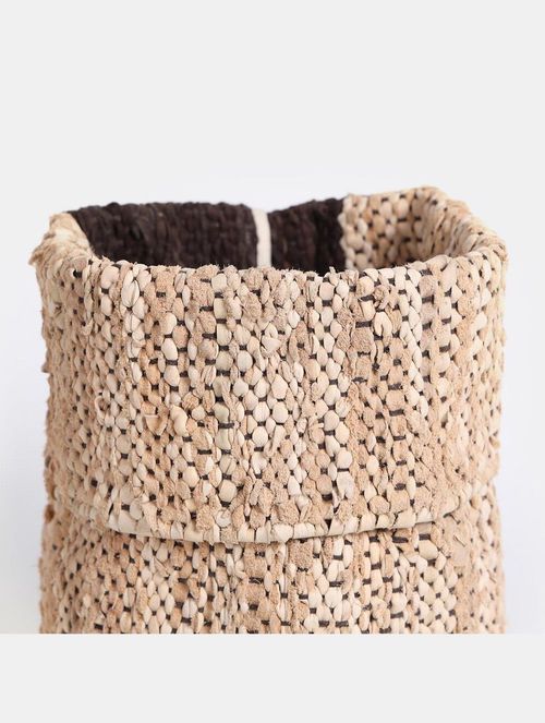 Recycled leather rugs are environmentally friendly options that repurpose leather scraps or remnants, reducing waste. They provide a unique texture and appearance due to the nature of recycled materials. The cotton component may contribute to softness, durability, and ease of care. Such rugs can be versatile and suitable for various interior design styles, adding warmth, texture, and visual interest to living spaces, bedrooms, or other areas of the home. The multicolor border can complement existing decor or serve as a focal point in the room.