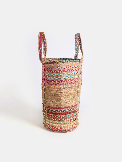 These stunning storage bags exude vibrant cheerfulness, crafted from a blend of durable, eco-friendly jute and recycled cotton. Ideal for serving as a laundry hamper or storing logs near the fireplace, wherever they're placed, they effortlessly infuse your space with a delightful burst of color.