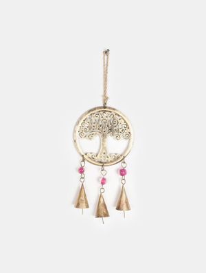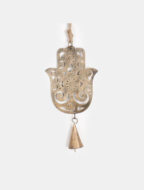 This distinctive handcrafted metal bell embodies potent personal transformation, the metamorphosis of life and personality, and the discovery of joy. Crafted with metal and rope, it serves as a versatile ornament suitable for doorways, verandas, children's rooms, or any corner of your home or garden.