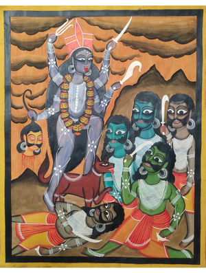 Immerse yourself in the rich heritage of Bengal with this exquisite Pattachitra painting handcrafted by master artists from Pingla, Midnapore. Rooted in centuries-old tradition, each piece tells a vivid story through intricate lines and natural colors derived from earth and plant sources. Painted on treated cloth or handmade paper, this artwork reflects the mythological, folk, and social narratives unique to the region. A timeless expression of devotion and artistry, it brings an authentic touch of Bengal?s cultural legacy into your space.