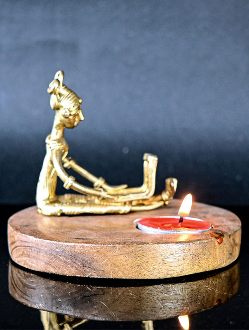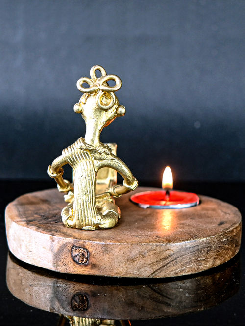 Crafted with meticulous care, this exquisite Dokra figurine of a tribal girl with laptop, resonates with the rich tapestry of history and culture and their modern lifestyle. Whether adorning your bedside table or nestled in a quaint artistic nook, it lends a captivating charm to your space, enhancing its graceful essence. Dokra, deriving its name from the esteemed Dhokra Damar tribe, guardians of the traditional metalworking heritage of West Bengal, evokes a legacy reaching back to the dawn of civilization. Rooted in the ancient art of lost-wax casting, one of humanity's oldest-known techniques, its lineage traces back to the storied era of the Harappan civilization.