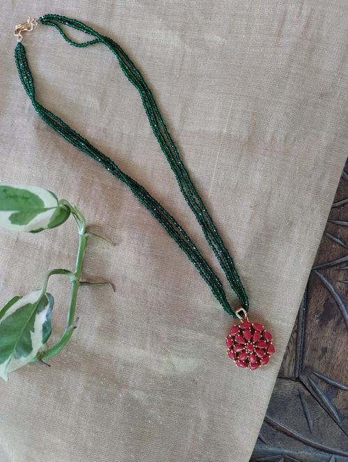 Material : Sugar beads / Hydro crystal beads with microplated coral pendant