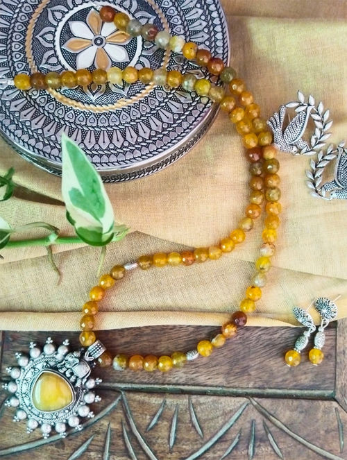 Beaded Necklace with oxidised silver pendant