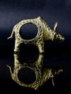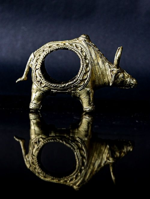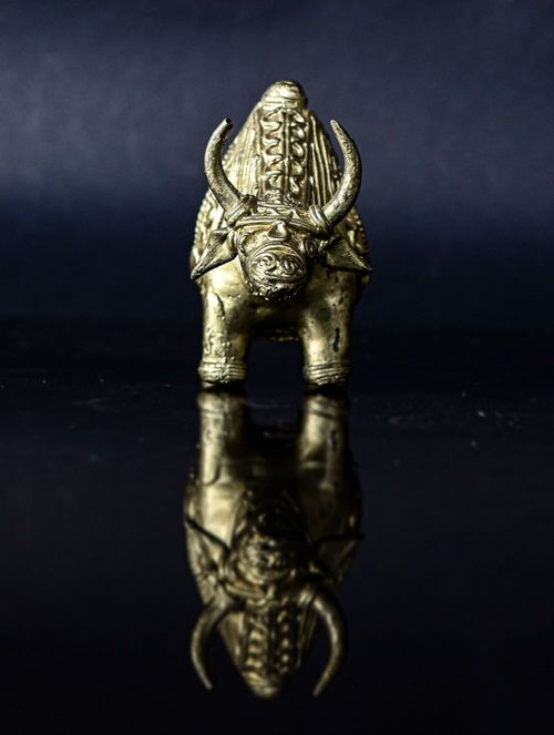 This exquisite Dokra sculpture portrays a bull, meticulously crafted in brass. Bull represents vitality and strength. It makes a splendid addition to any setting, whether adorning your desk or presented as a thoughtful gift. Its intricate details are sure to captivate and spark conversations, while also offering a glimpse into the rich heritage of this ancient craft and the remarkable skill of its artisan creator, perhaps even igniting a touch of inspiration.