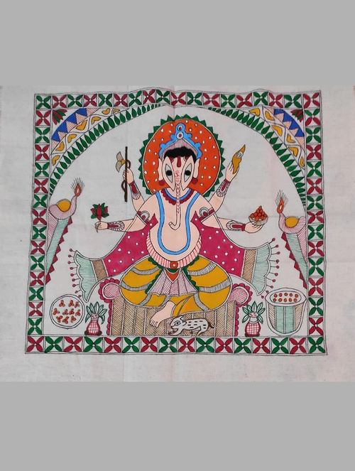 Bring home this unique work by Antara Verma. Antara is a talented artist from Bihar, well known for Madhubani paintings, an age-old art form renowned for its intricate patterns and vivid colors. Drawing deeply from her cultural heritage, Antara masterfully weaves ancient tales, folklore, and the beauty of nature into her captivating creations. Her unique approach blends traditional techniques with modern sensibilities, creating art that resonates with both contemporary and traditional audiences. With a passion for preserving and evolving this rich tradition, Antara's work has been featured in prestigious exhibitions both in India and abroad, earning widespread recognition and acclaim. Beyond her own artistic achievements, she dedicates herself to mentoring young artists, encouraging them to honor their roots while embracing innovation.