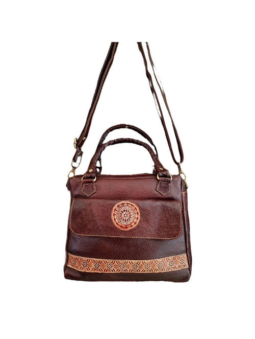 This exquisite piece is a testament to the art of handcrafting, meticulously fashioned from premium vegetable-tanned goat and sheep leather. Each bag features stunning hand-block printed motifs, celebrated in the classic Shantiniketani style, showcasing a vibrant heritage that is both rich and unique. The vegetable tanning process not only ensures durability but also imparts the leather with a remarkable ability to retain its embossed designs permanently. Elevate your style with this elegant Shantipur Leather Bag, where every detail narrates a story of artisanal mastery and enduring beauty.