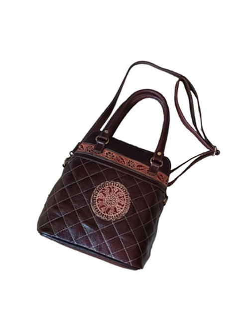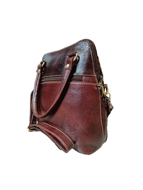 This exquisite piece is a testament to the art of handcrafting, meticulously fashioned from premium vegetable-tanned goat and sheep leather. Each bag features stunning hand-block printed motifs, celebrated in the classic Shantiniketani style, showcasing a vibrant heritage that is both rich and unique. The vegetable tanning process not only ensures durability but also imparts the leather with a remarkable ability to retain its embossed designs permanently. Elevate your style with this elegant Shantipur Leather Bag, where every detail narrates a story of artisanal mastery and enduring beauty.