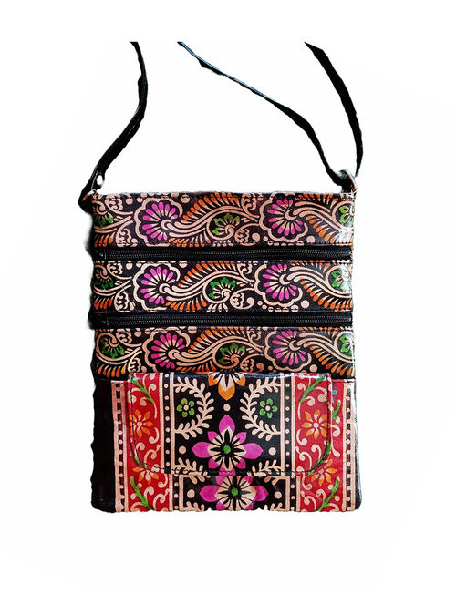 This exquisite piece is a testament to the art of handcrafting, meticulously fashioned from premium vegetable-tanned goat and sheep leather. Each bag features stunning hand-block printed motifs, celebrated in the classic Shantiniketani style, showcasing a vibrant heritage that is both rich and unique. The vegetable tanning process not only ensures durability but also imparts the leather with a remarkable ability to retain its embossed designs permanently. Elevate your style with this elegant Shantipur Leather Bag, where every detail narrates a story of artisanal mastery and enduring beauty.