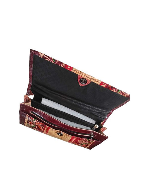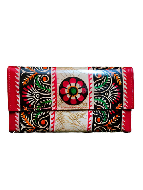 Hand Block Printed Santiniketan Leather Wallet with batik print 5.5 X 10 inches (compartment: 1 Main, 1 inside) Multicolour