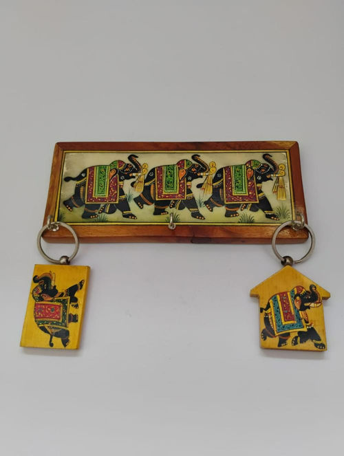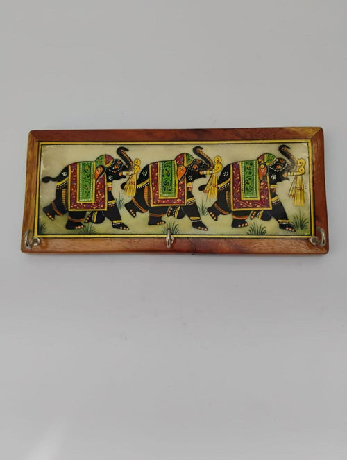 3X7-inch Hand Painted Teak wood & Marble Stone wall hanging Key holder