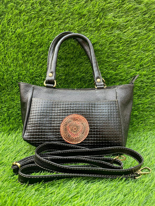 This exquisite piece is a testament to the art of handcrafting, meticulously fashioned from premium vegetable-tanned goat and sheep leather. Each bag features stunning hand-block printed motifs, celebrated in the classic Shantiniketani style, showcasing a vibrant heritage that is both rich and unique. The vegetable tanning process not only ensures durability but also imparts the leather with a remarkable ability to retain its embossed designs permanently. Elevate your style with this elegant Shantiniketan Leather Bag, where every detail narrates a story of artisanal mastery and enduring beauty.