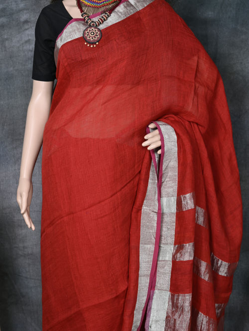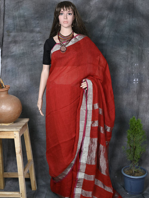 Linen Zari paar Saree without blouse piece