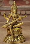 Exclusively handcrafted in traditional form in pure brass with wax technique, the intricate detail of the statue makes it stand apart. Saraswati is seated on a lotus pedestal with her emblems and vina in her hands, symbolizing her superiority over worldly desires. She is the ultimate representation of knowledge and wisdom.