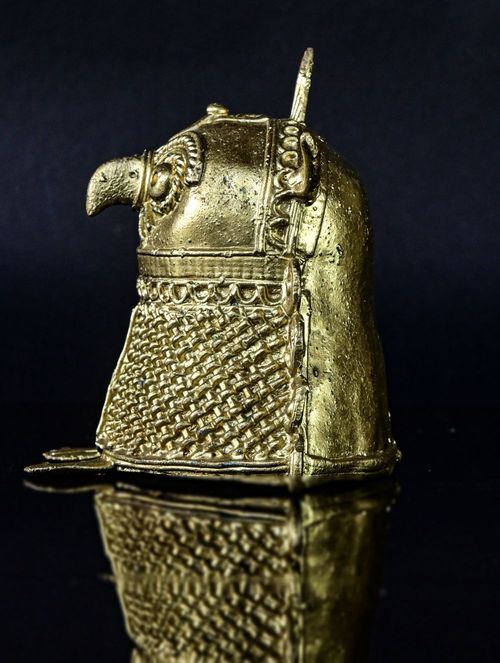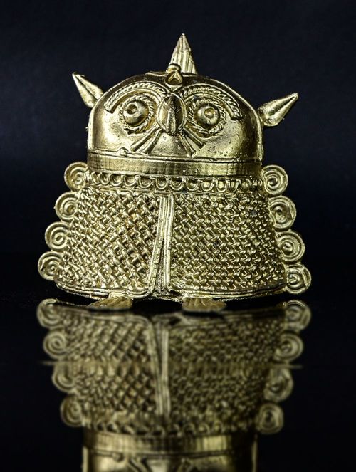 This Dokra owl figurine, a masterpiece destined to elicit admiration from art aficionados, holds the potential to become a treasured addition to your collection. Fashioned with care from brass, it possesses the ability to adorn your home's mantle or glass display with its exquisite craftsmanship and rich heritage. Originating from the skilled hands of the Dhokra Damar tribe, traditional artisans of West Bengal, Dokra art encapsulates a profound history. Employing the ancient lost-wax casting technique, a method dating back to the venerable Harappan civilization, this piece embodies timeless artistry and cultural significance.
