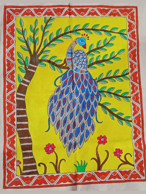 Bring home this unique work by Antara Verma. Antara is a talented artist from Bihar, well known for Madhubani paintings, an age-old art form renowned for its intricate patterns and vivid colors. Drawing deeply from her cultural heritage, Antara masterfully weaves ancient tales, folklore, and the beauty of nature into her captivating creations. Her unique approach blends traditional techniques with modern sensibilities, creating art that resonates with both contemporary and traditional audiences. With a passion for preserving and evolving this rich tradition, Antara's work has been featured in prestigious exhibitions both in India and abroad, earning widespread recognition and acclaim. Beyond her own artistic achievements, she dedicates herself to mentoring young artists, encouraging them to honor their roots while embracing innovation.