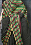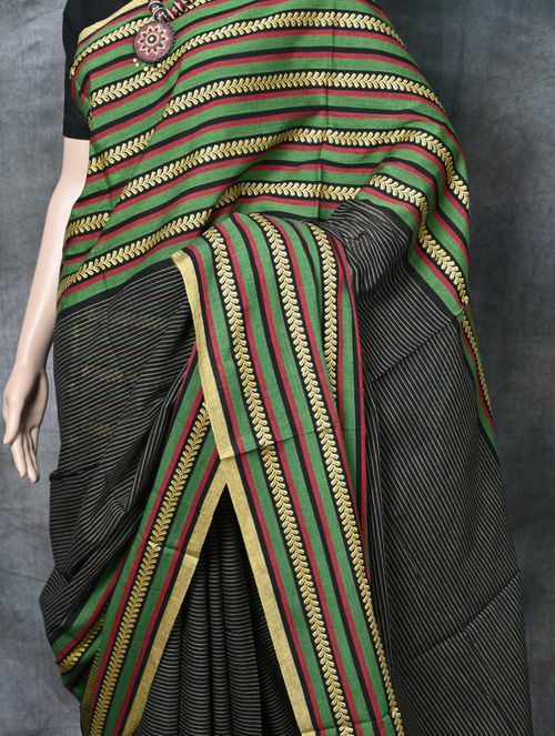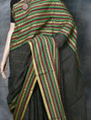 Explore the collection of exquisite and authentic Bengal Traditional Handloom Cotton Sarees on Paramparaonline.com. This beautifully designed saree, handmade in Shantipur, West Bengal, are crafted with 100% pure premium cotton. The sarees feature intricate whole-body designs, showcasing the renowned artistry of Santipur Tant. This Black with multicolour striped saree measures 5.50 meters (12 haat) and comes without a blouse piece. Each saree is a testament to the authentic Bengal Tant tradition, promising to enhance your wardrobe with elegance and charm. Care Instructions: Dry Clean Only, do not bleach