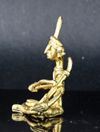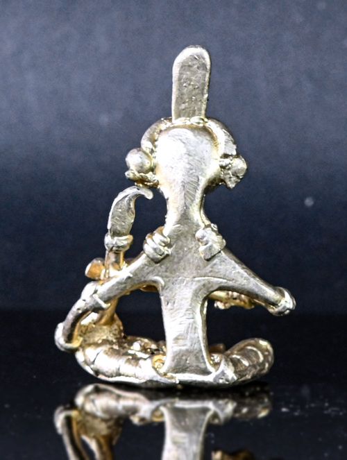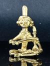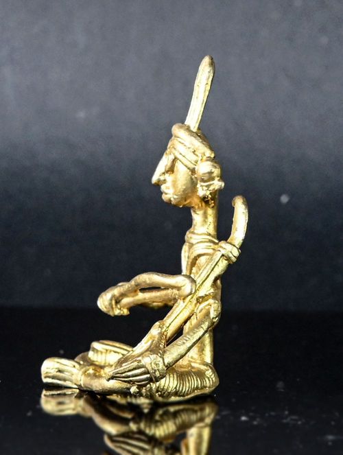 This exquisite Dokra sculpture portrays a tribal man, in sitting posture and playing the traditional banam, meticulously crafted in brass. It makes a splendid addition to any setting, whether adorning your desk or presented as a thoughtful gift. Its intricate details are sure to captivate and spark conversations, while also offering a glimpse into the rich heritage of this ancient craft and the remarkable skill of its artisan creator, perhaps even igniting a touch of inspiration.