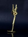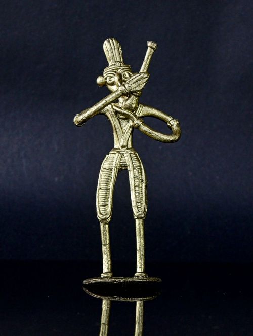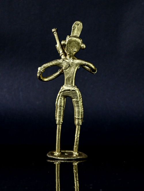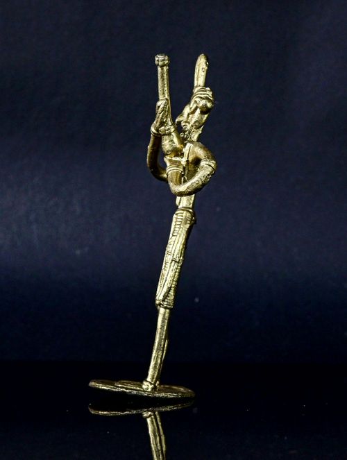 This exquisite Dokra sculpture portrays a tribal man with hukkah in hand, meticulously crafted in brass. It makes a splendid addition to any setting, whether adorning your desk or presented as a thoughtful gift. Its intricate details are sure to captivate and spark conversations, while also offering a glimpse into the rich heritage of this ancient craft and the remarkable skill of its artisan creator, perhaps even igniting a touch of inspiration.