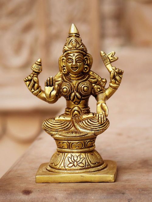 Lakshmi is the Vedic deity epitomizing wealth, auspiciousness, fortune and prosperity. She is the divine consort of Lord Vishnu. Goddess Lakshmi denotes that Shakti or energy of the Divine that assist you in achieving your pure desires. Own this piece of master craftsmanship to accentuate your divine experience and bring prosperity in your life.