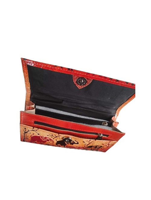 Hand Block Printed Santiniketan Leather Wallet 4.5 X 8 inches (compartment: 1 Main, 1 inside) Multicolour