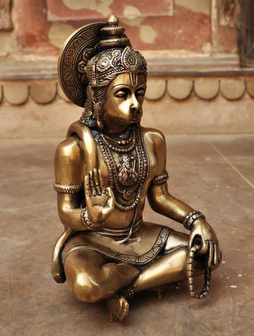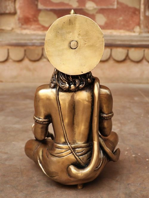 The seated Lord Hanuman statue, crafted from brass, exudes an artistic essence that breathes life into its form. Upon careful observation, one can discern Lord Rama intricately sculpted into its figure. This masterpiece stands as a testament to the skill and dedication of the master artisans who brought it to fruition.