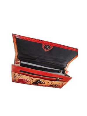 Hand-Painted Golden Colour Madhubani Flap Clutch bag