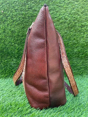 Hand Block Printed Santiniketan Leather Hand cum Sling bag 9 X 13.5 X 1 inch (compartment: 1 Main, 1 backside)